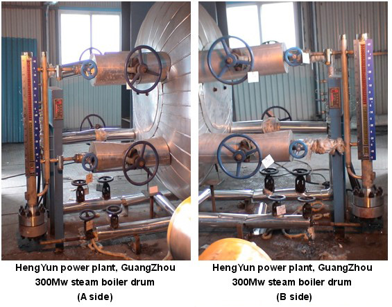 Currently most of the high/extra high pressure boilers in the power plants are fitted with the quartz glass level indicators, such as transparent, reflex or bi-color glass level indicators. As a kind of on site level indicators, quartz glass type is undesirable since it is prone to leakage and easy to get dirty. Consideration should also be taken to its large error during normal operation. Furthermore, high cost and extensive maintenance are needed for this type of level indicator. As a result, on site level indicator for boiler drum has always been a perplexing problem for safe operation in power plants.